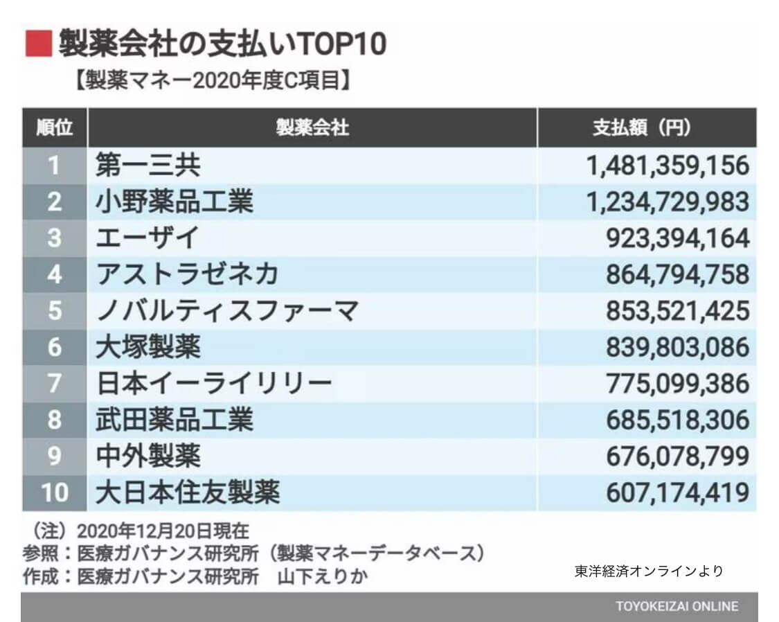 製薬会社と病院の関係性からわかります。