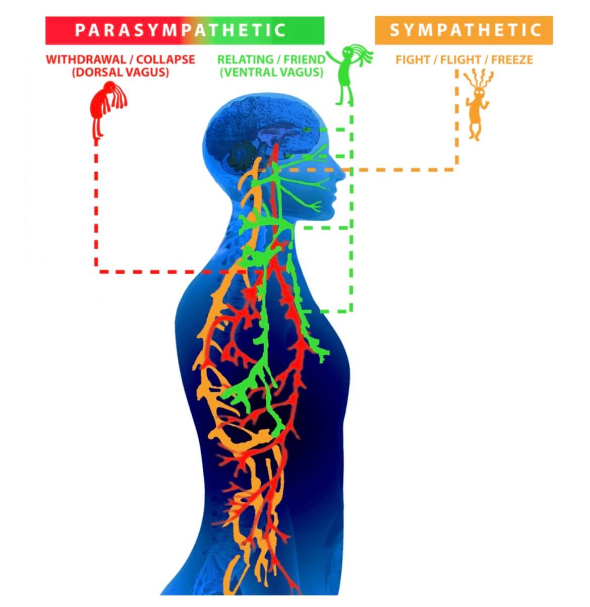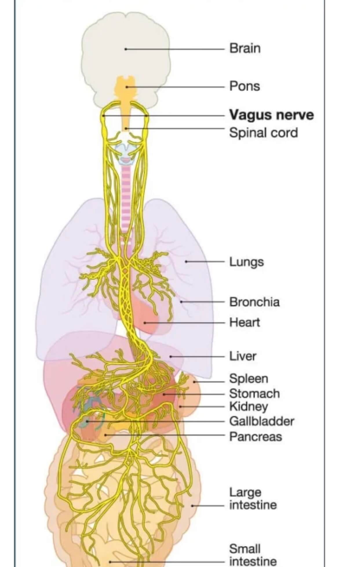 腹側迷走神経 ▶︎ みぞおちより上の臓器 背側迷走神経 ▶︎ みぞおちより下の臓器